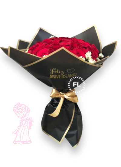 Excelente detalle ideal para sorprender a tu pareja con este bouquet, compuesto por 50 rosasy follajes de acompañamiento, envuelto en papel impermeable coreano y moño.