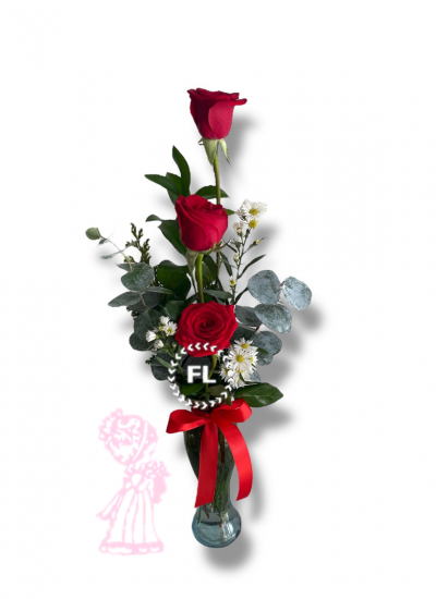Lindo detalle en violetero de cristal, ideal para el escritorio con 3 Rosas