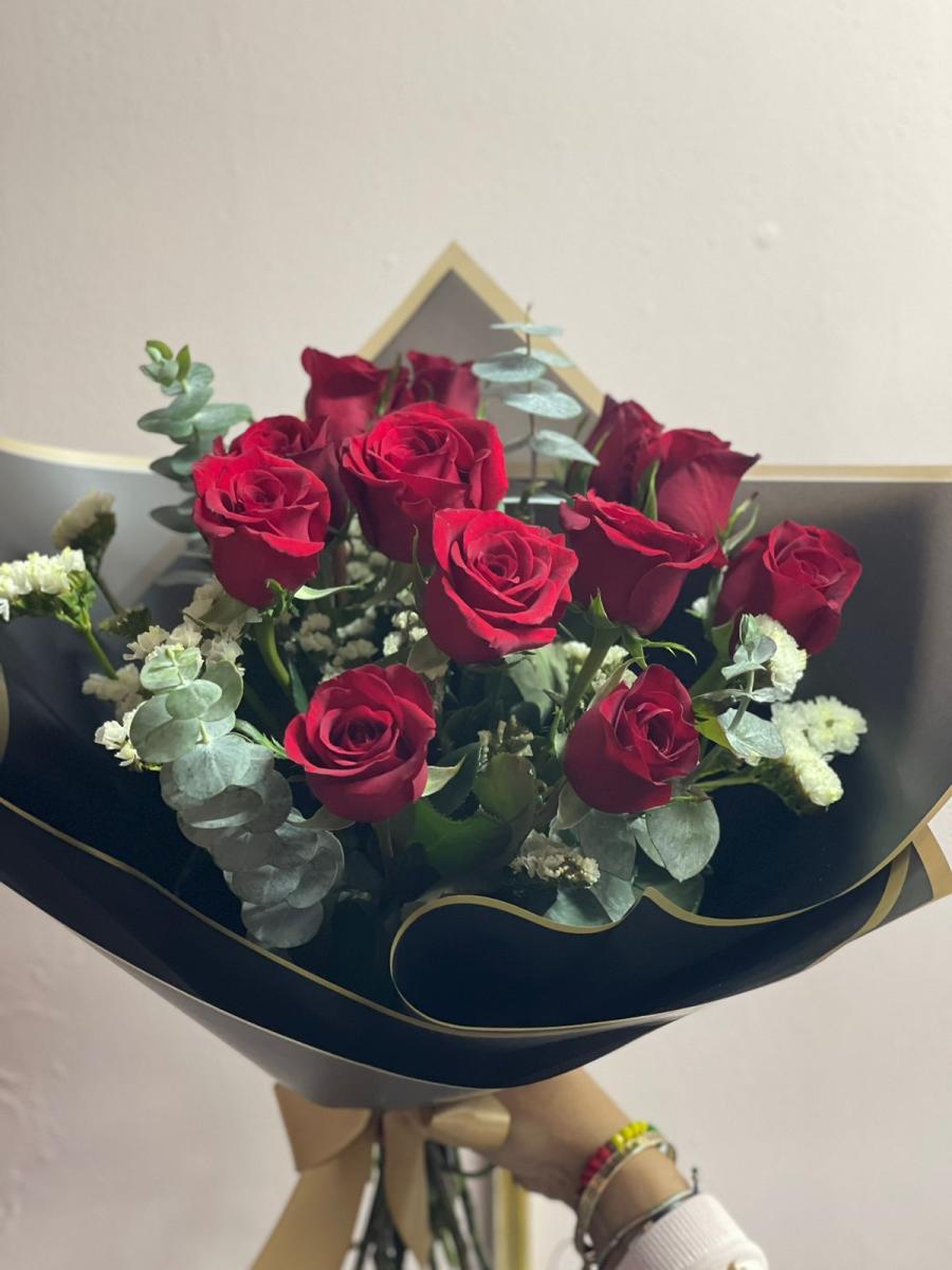 BOUQUET CON 12 ROSAS EN PAPEL COREANO