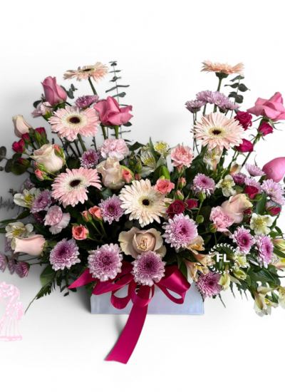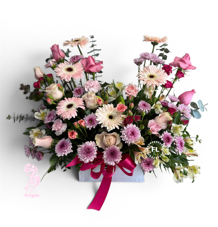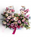 NOTA: El tono, flores, base, listón pudiesen variar según existencias, en el caso de no contar con algún tono, flor, follaje o base será sustituido por flores similares del mismo valor o superior