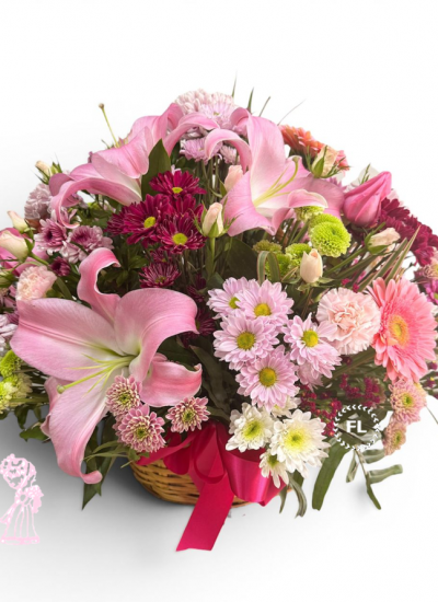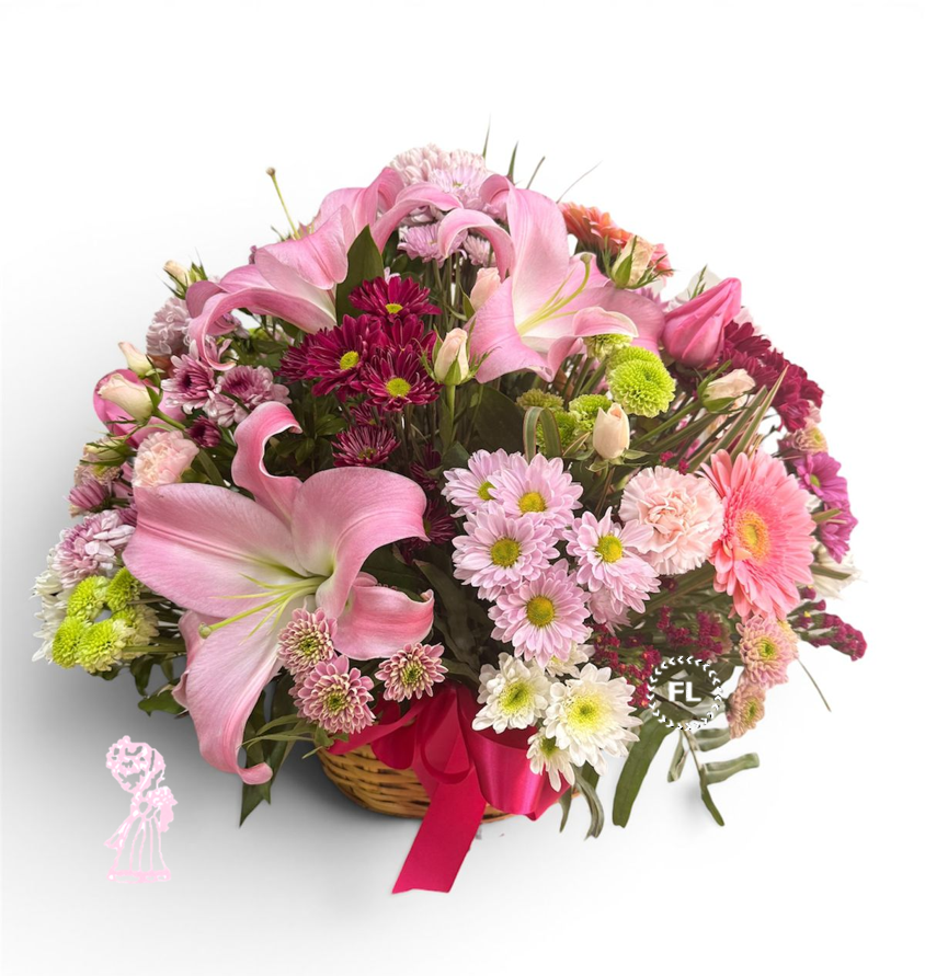 Hermosa canasta grande con flores surtidas, diseño redondo
