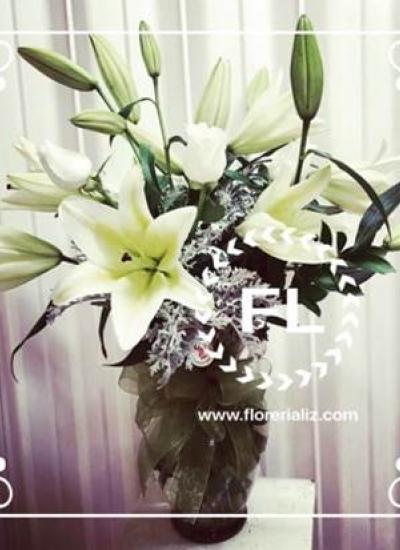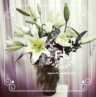 6 varas de Lirio variante oriental y 6 rosas, su belleza es increíble, pero su principal atractivo es su fragancia, al ser una de las variedades que más olor impregna en el ambiente. Así que si piensas regalar algo diferente, hermoso y original, no dudes en ordenar un bello jarrón.