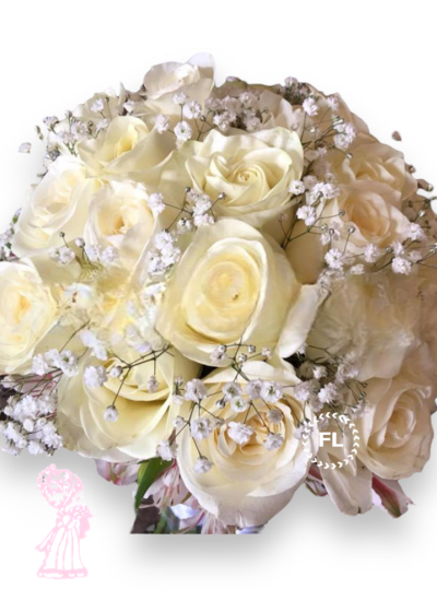 Ramo con  24 rosas acompañado de Gypsophila y astromerias
