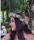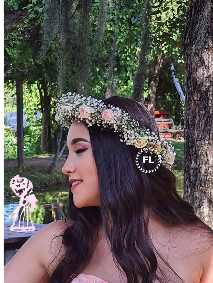 Tiara de mini rosas naturales acompañado de Gypsophila